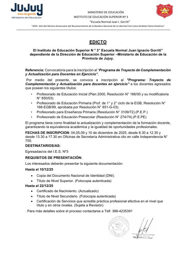 Destinatarios: Docentes egresados del IES 3 en actividad, que hayan cursado una carrera de 3 años de duración.