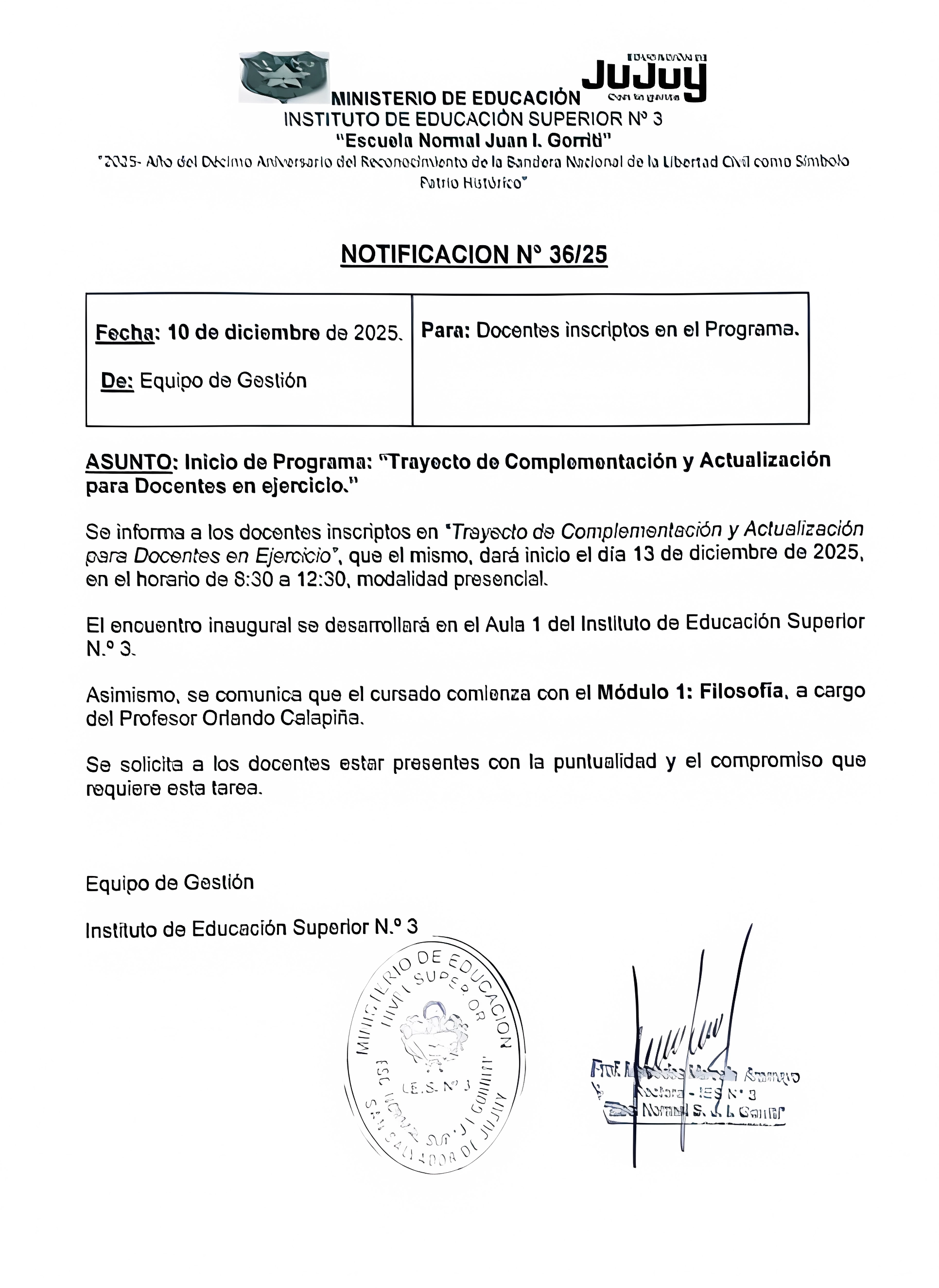 Fecha y horario de inicio del «Trayecto de complementación y actualización para docentes en ejercicio»